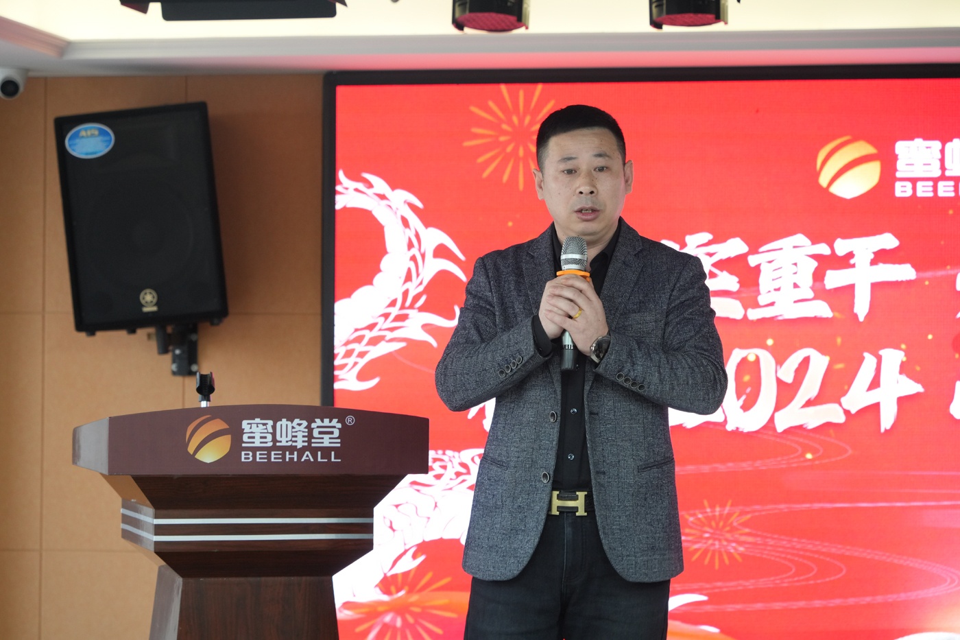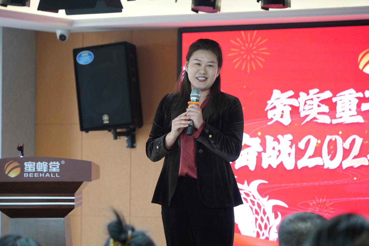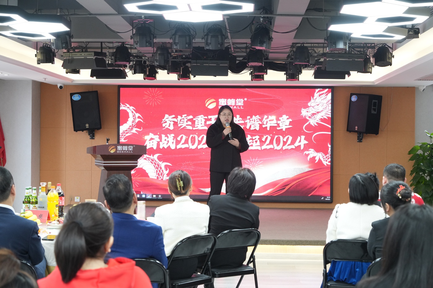 順勢而為、不負(fù)所托、聚力同心、拼搏奮進(jìn)、成績卓越、可喜可賀。蜜蜂堂集團(tuán)董事長任總首先發(fā)表講話,盤點(diǎn)了2023年蜜蜂堂事業(yè)部、御蜂坊事業(yè)部、外貿(mào)事業(yè)部、藥線事業(yè)部、電商事業(yè)部等等事業(yè)部的業(yè)績增長率,蜜蜂堂上榜北京市大興區(qū)企業(yè)業(yè)績增長名單。任總表揚(yáng)了蜜蜂堂工廠各生產(chǎn)中心、設(shè)備中心、物流中心、采購中心及大行政中心在2023年出色地完成各項(xiàng)任務(wù)。