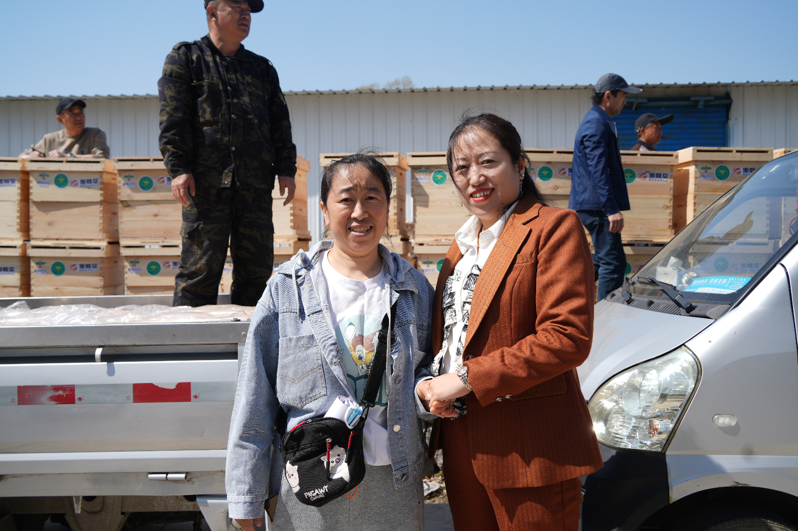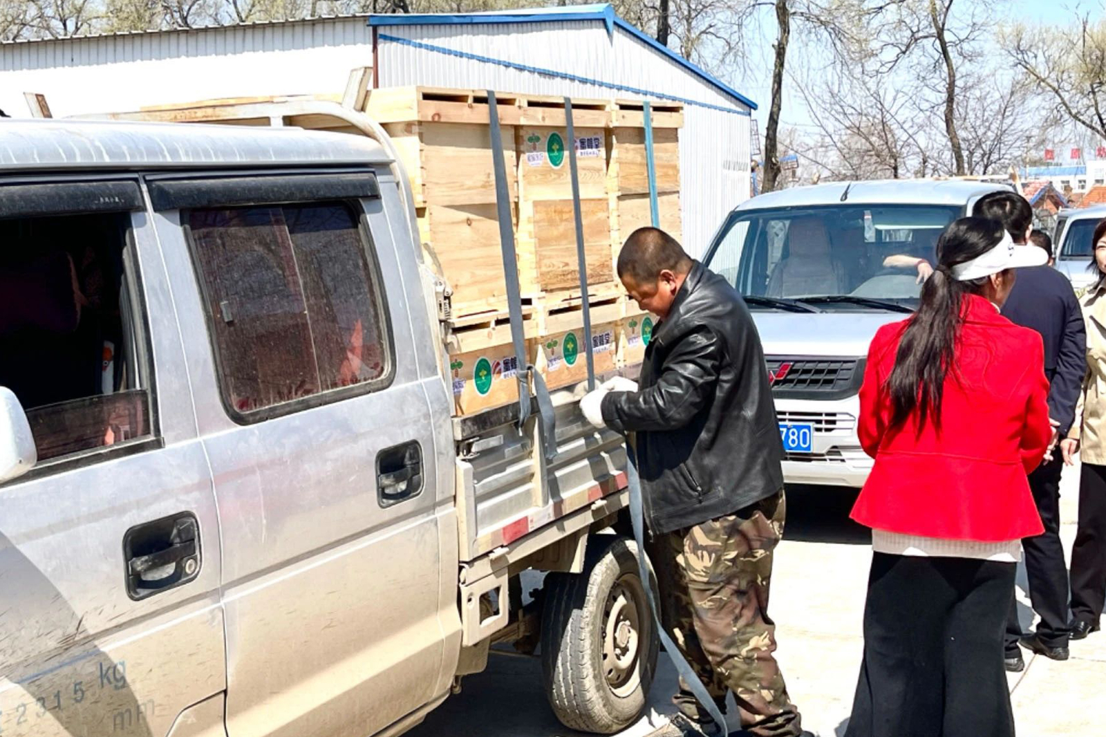 捐贈(zèng)儀式之后,12名被幫扶對(duì)象高高興興的將每人獲贈(zèng)的20套蜂箱拉回自己的蜂場(chǎng)。