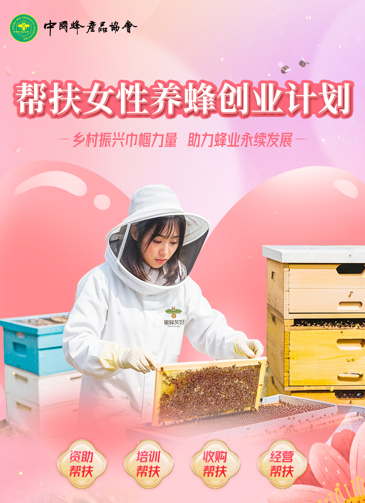 2024年3月8日,中國(guó)蜂產(chǎn)品協(xié)會(huì)發(fā)起了“關(guān)于發(fā)起幫扶女性養(yǎng)蜂創(chuàng)業(yè)計(jì)劃”的通知,北京蜜蜂堂熱心公益,積極主動(dòng)落實(shí)此幫扶計(jì)劃。