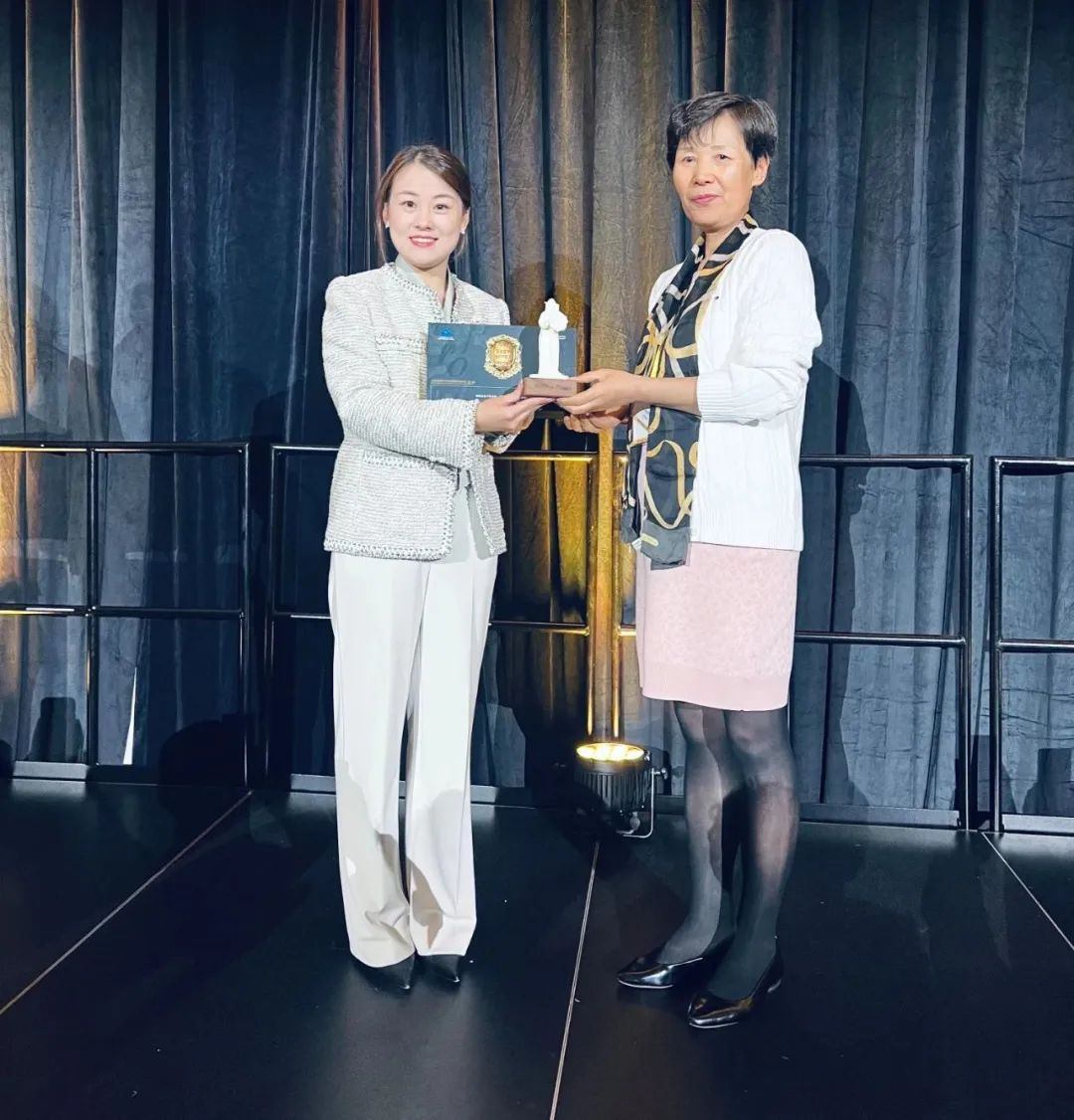 北京蜜蜂堂集團(tuán)外貿(mào)部副總?cè)舞磋丛陬I(lǐng)獎(jiǎng)現(xiàn)場(chǎng)