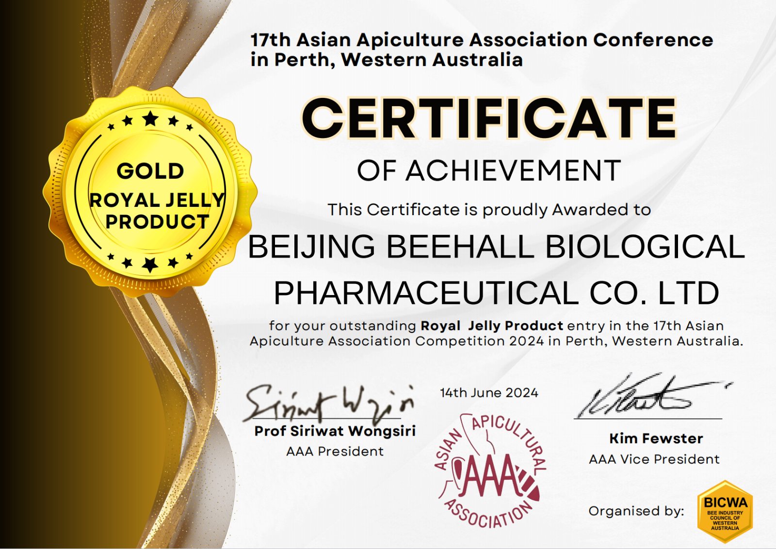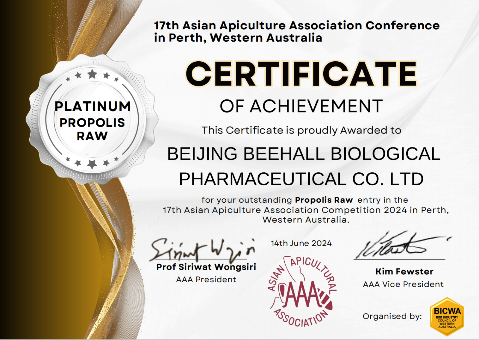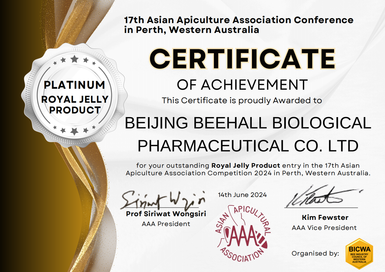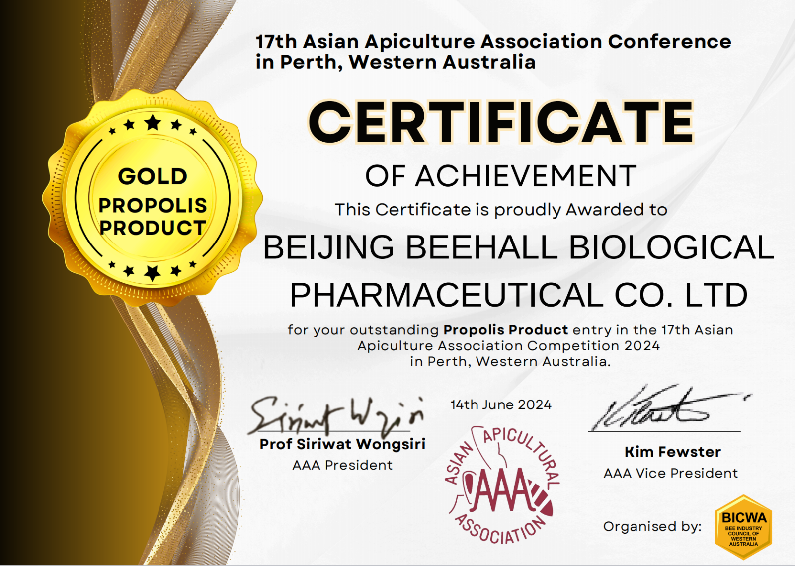 此次澳大利亞珀斯亞洲蜂聯(lián)(AAA)第17屆亞洲養(yǎng)蜂大會(huì)摘得蜂膠、蜂王漿成品及蜂膠原料2大項(xiàng)重量級(jí)最高獎(jiǎng)項(xiàng)——2大鉑金獎(jiǎng)及2大金獎(jiǎng),是中國(guó)蜂業(yè)從陪跑到領(lǐng)跑的見證,也是中國(guó)從蜂業(yè)大國(guó)到蜂業(yè)強(qiáng)國(guó)轉(zhuǎn)變的見證。未來(lái),北京蜜蜂堂將在繼續(xù)保持產(chǎn)品領(lǐng)先的優(yōu)勢(shì)下,探索更多中國(guó)蜂產(chǎn)品可能之路,力爭(zhēng)讓中國(guó)蜂業(yè)笑傲全球。